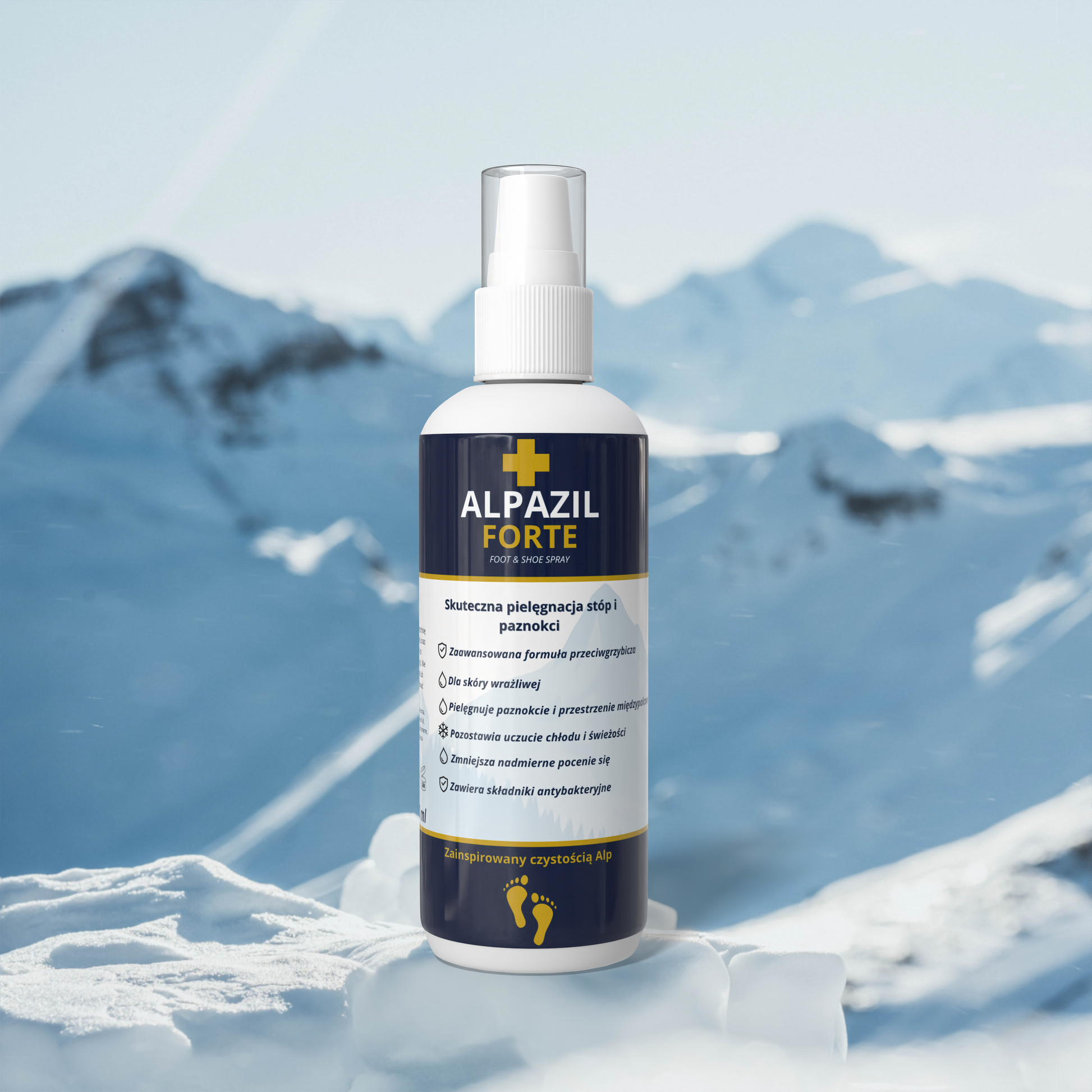 ALPAZIL FORTE to innowacyjny spray do stóp i obuwia, który od pierwszego użycia działa w głąb płytki paznokcia i skóry, aby chronić, pielęgnować i wspierać zdrowy wygląd.