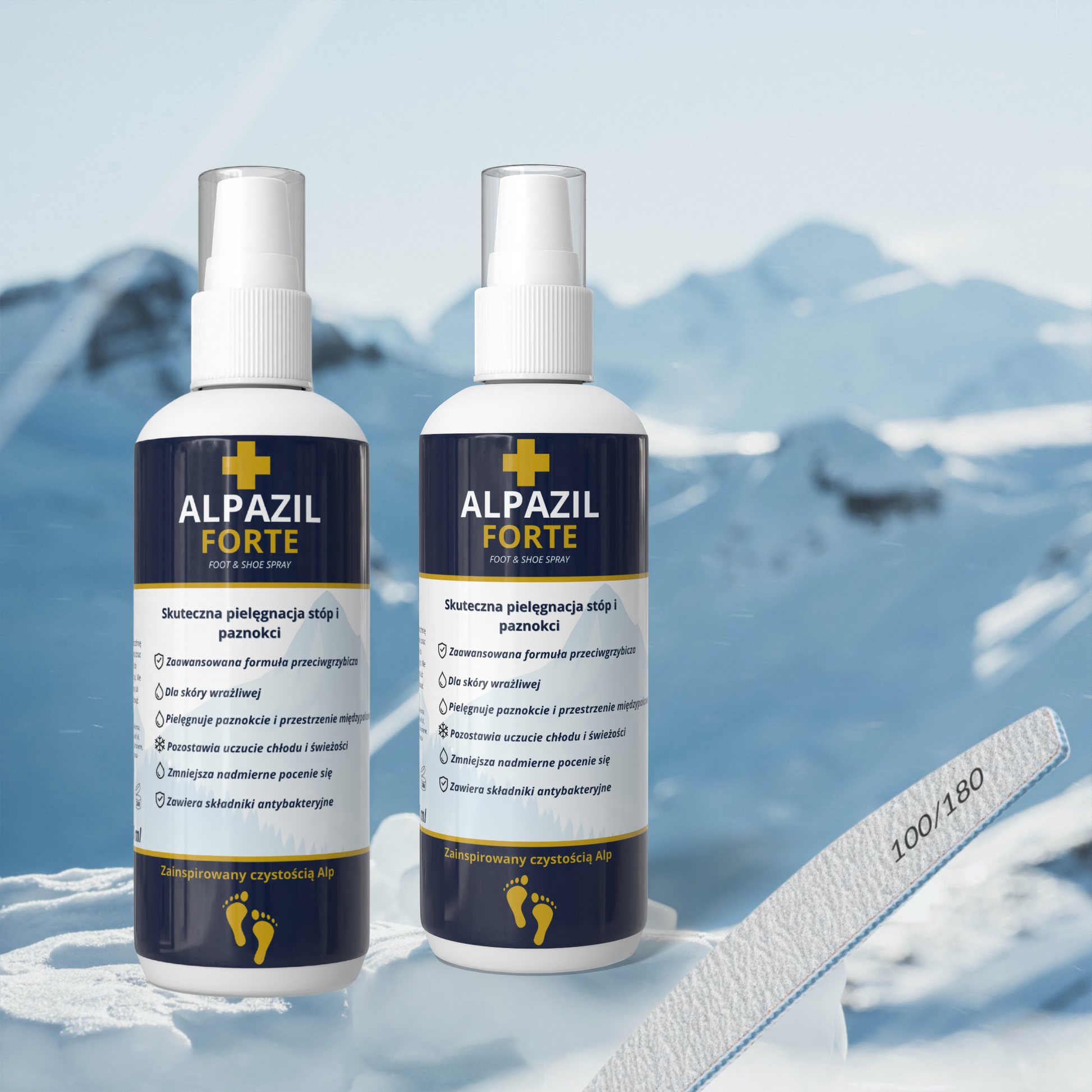 ALPAZIL FORTE to innowacyjny spray do stóp i obuwia, który od pierwszego użycia działa w głąb płytki paznokcia i skóry, aby chronić, pielęgnować i wspierać zdrowy wygląd.